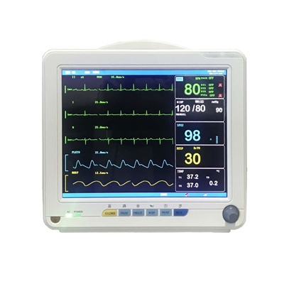 1、12.1英寸TFT液晶屏顯示病人的心電波形、呼吸波形、脈搏血氧容積圖曲線。