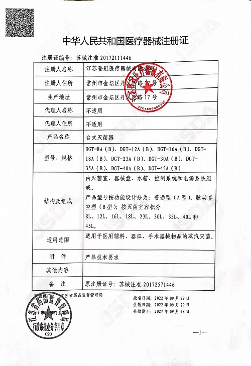 產(chǎn)品名稱 : 登冠臺式滅菌器DGT-12B型